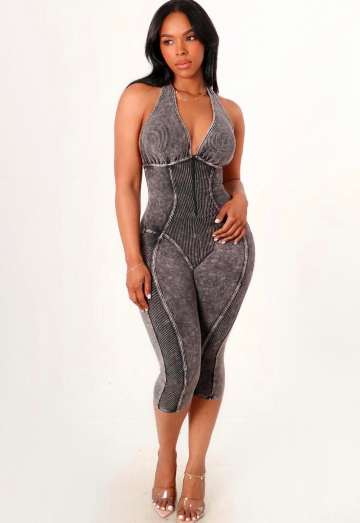 Ladies get into the super cute romper and has a built-in corset very stretchy excellent quality. Can be paired with a tennis shoe or a heel.