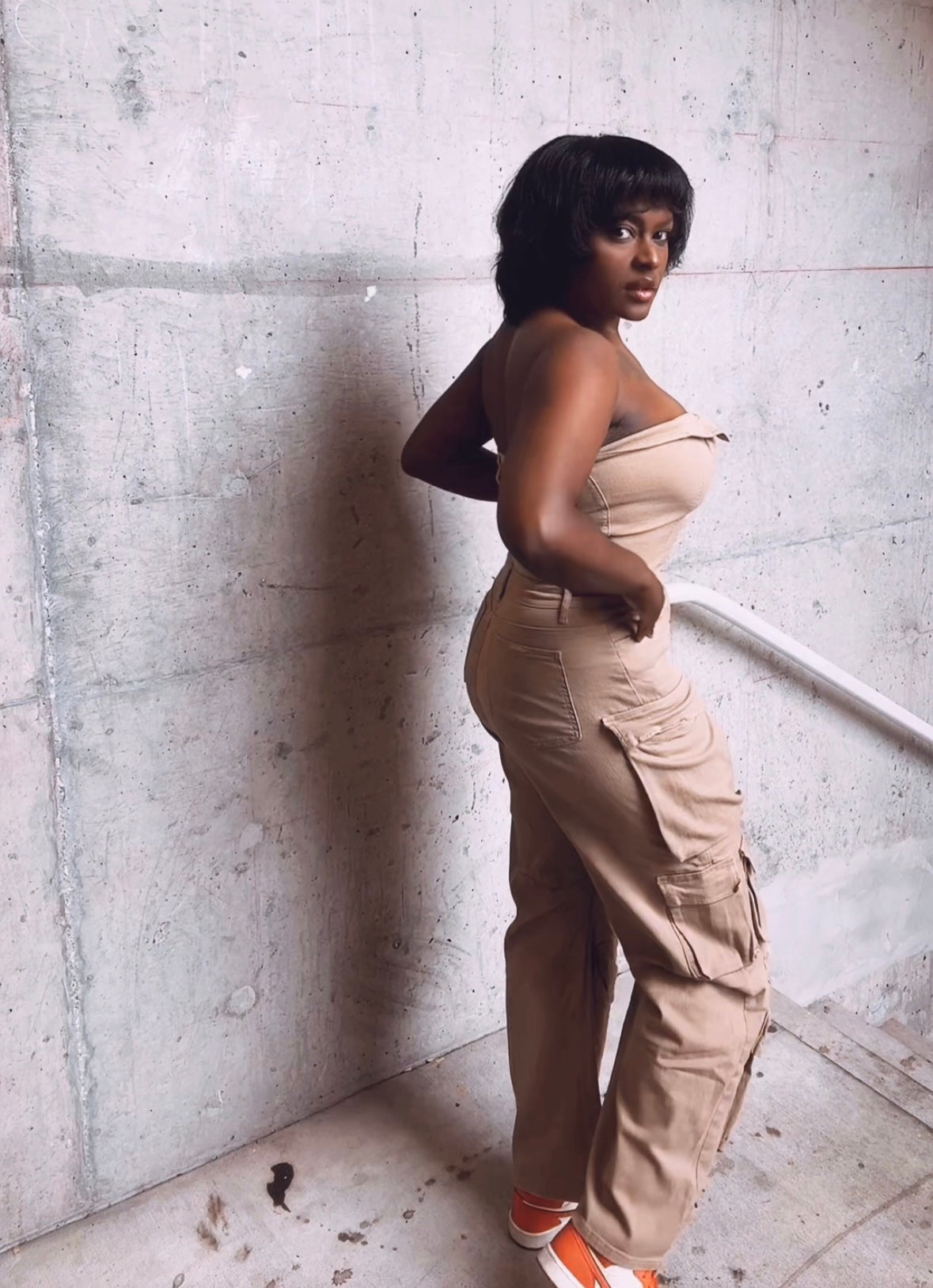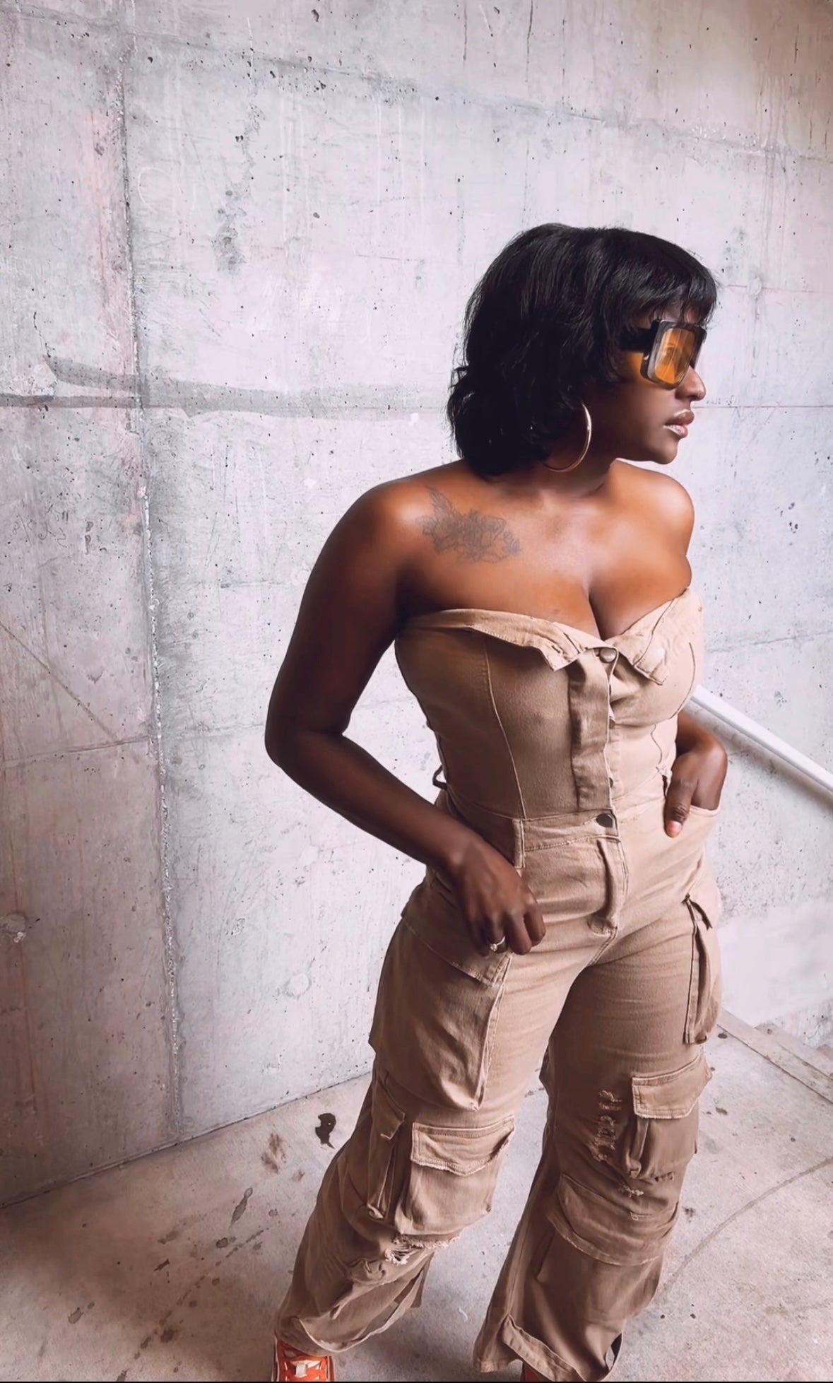 Jean cargo multi pocketed jumper!Button up top and wideleg and true to size. Model wears size medium! Can be dressed up or down