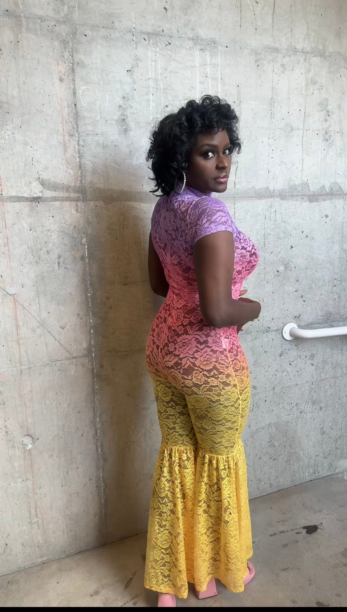 We love a bell bottom lace bodysuit with excellent stretch! Model wears size medium.