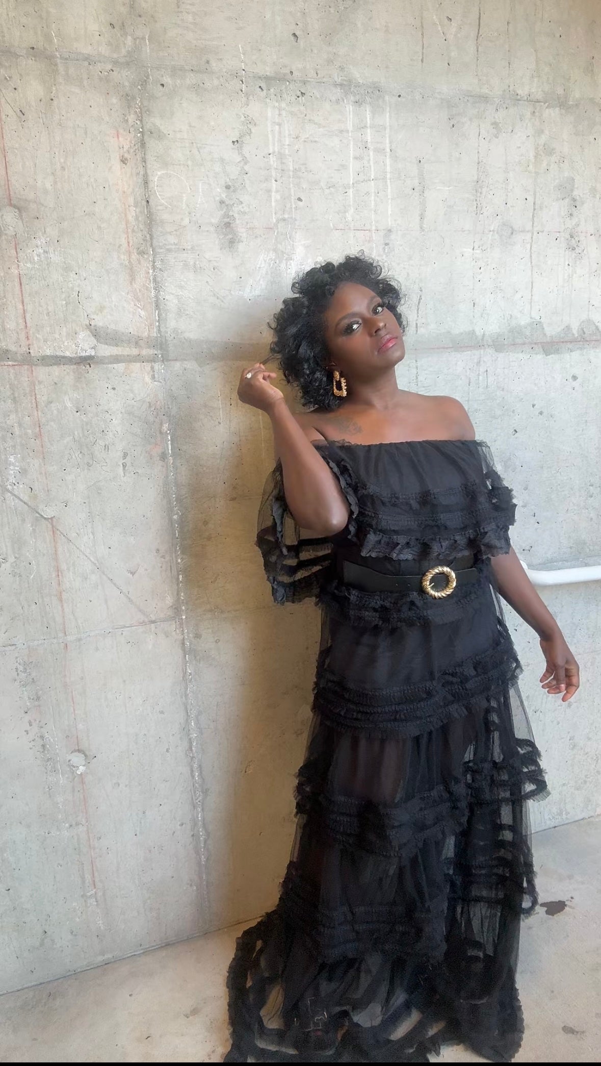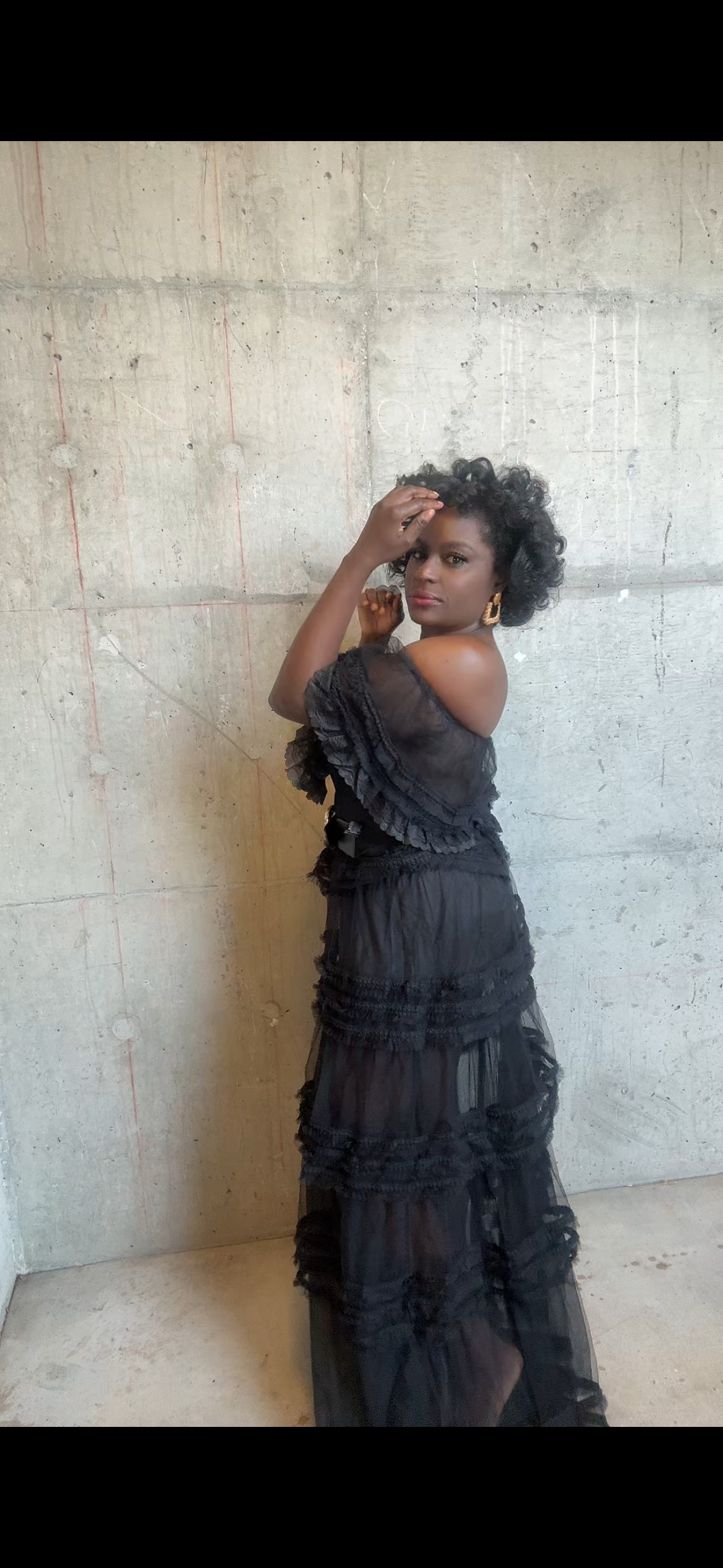 This black sundress is truly a conversation piece! Layers of ruffles and mesh. See through only at the bottom. True to size. Model wears size medium
